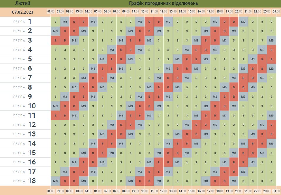 У Чернівецькій області оприлюднили графік відключень електрики на 7 лютого. За добу світла не буде по шість годин в кожній групі, ще шість — “можливо заживлені”.
