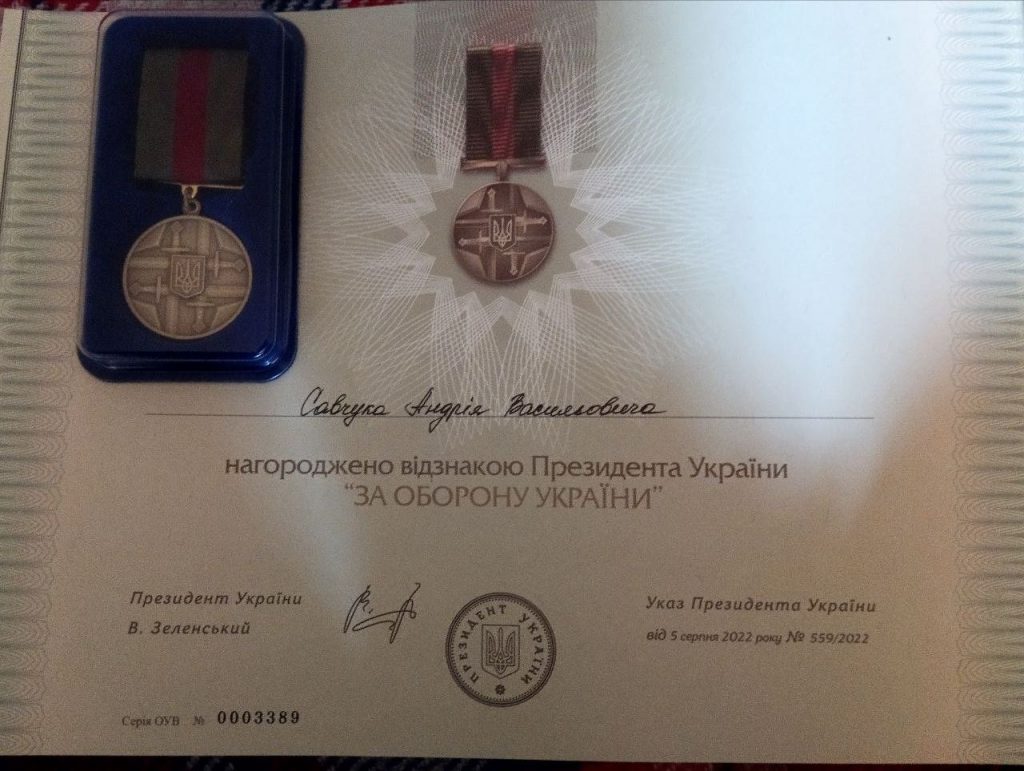 Наш воїн з Глибоччини Андрій Савчук, який вже був тричі поранений на фронті, отримав відзнаку від Президента України “За оборону України”.