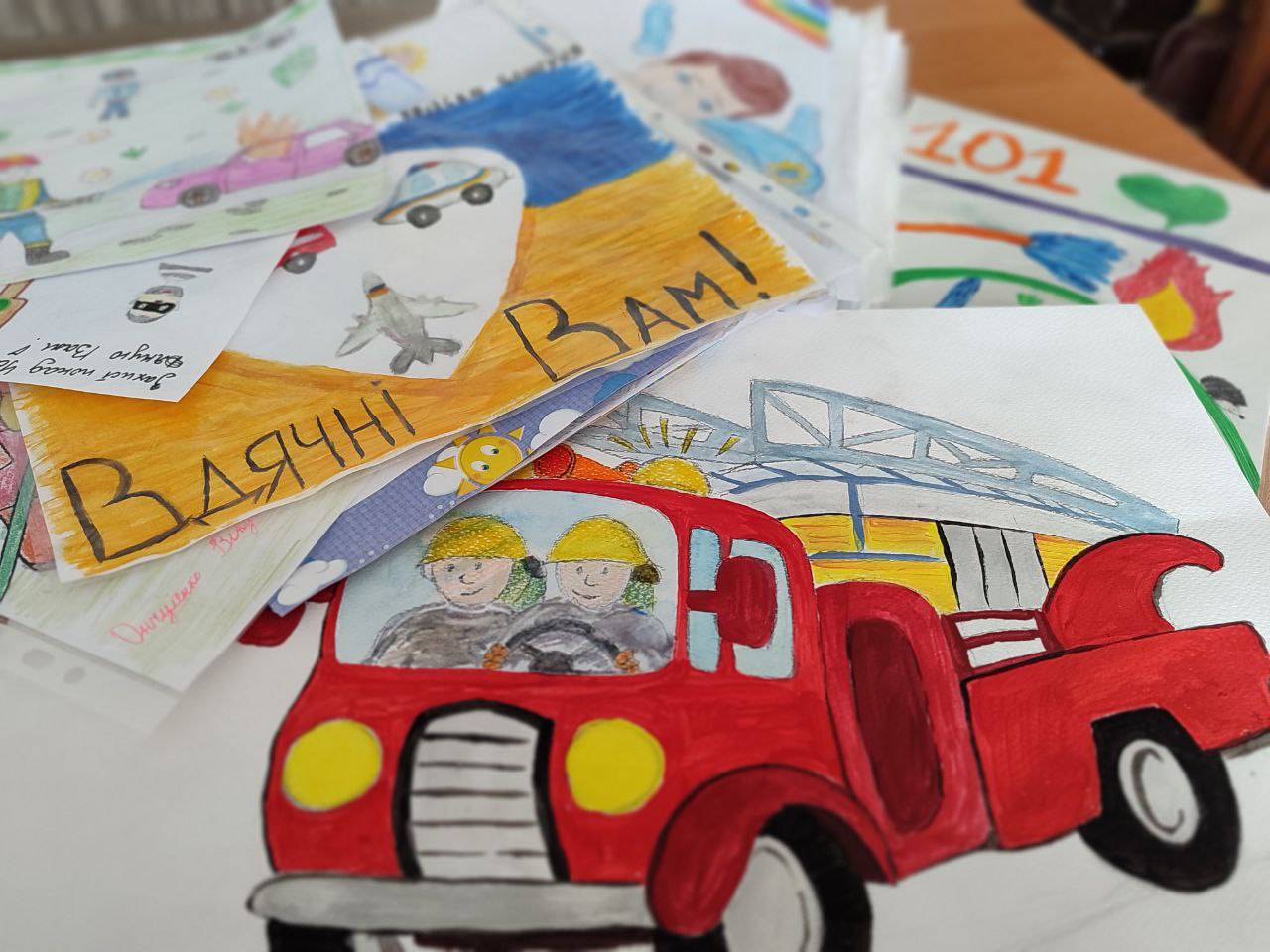 В подяку за проведену роботу рятувальників і поліцейських, діти розповідали вірші, співали пісні та подарували тематичні малюнки. В результаті зустрічі всі залишилися задоволеними а діти сповненими незабутніх емоцій.