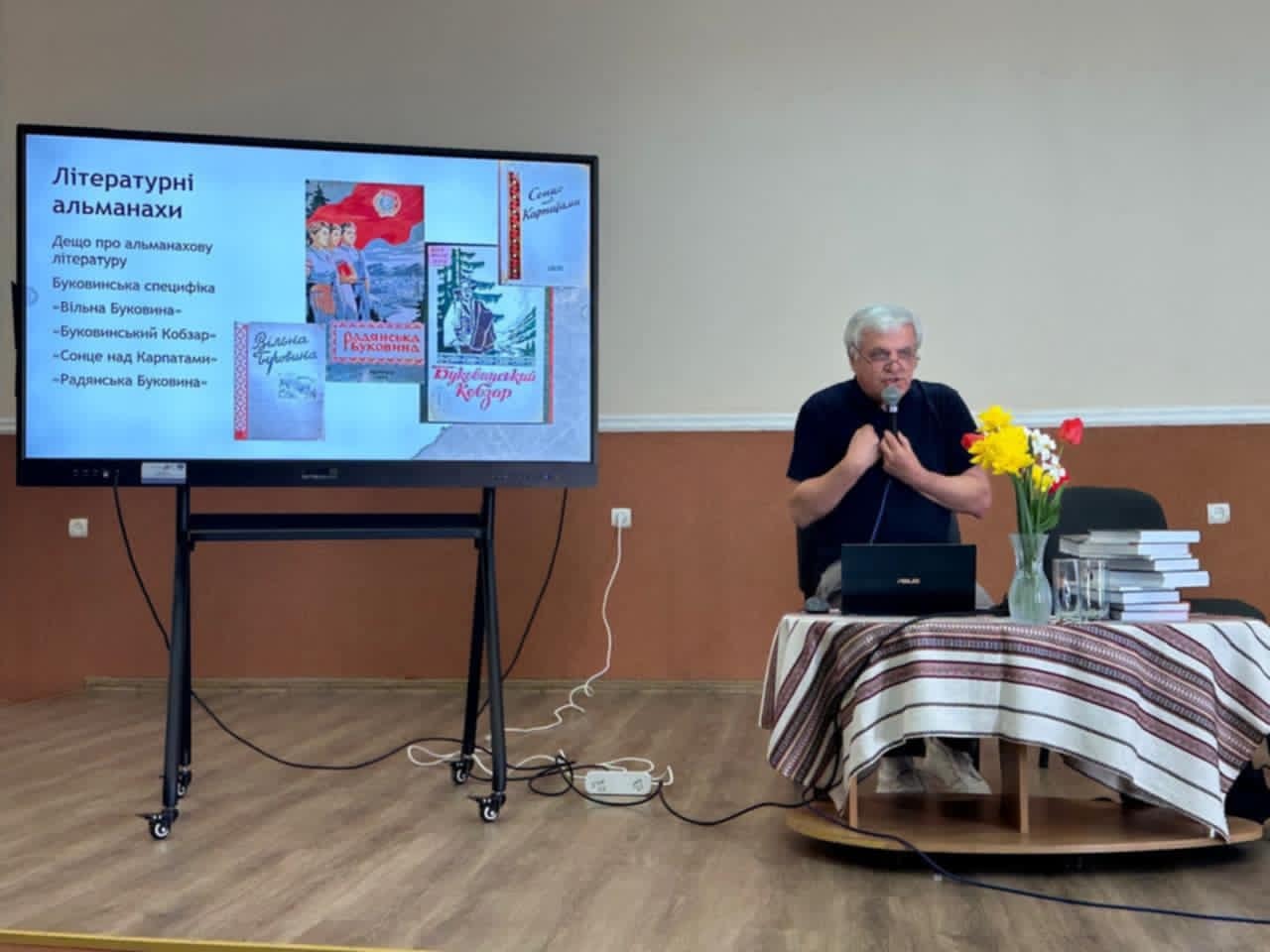 Ведуча представила всім присутнім цікаву авторську діяльність шановного гостя. Відтак Микола Степанович детально презентував свій двотомник «Змосковлення Буковини».