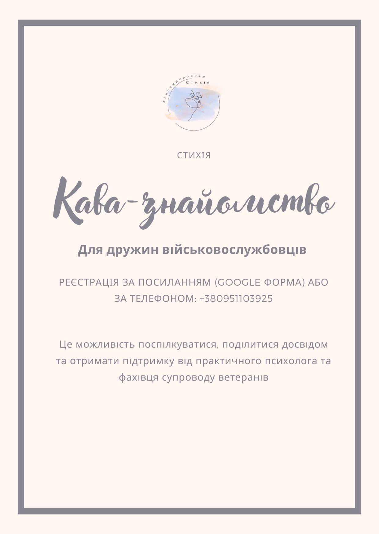 Отож запрошуємо на зустріч “КАВА-ЗНАЙОМСТВО”!