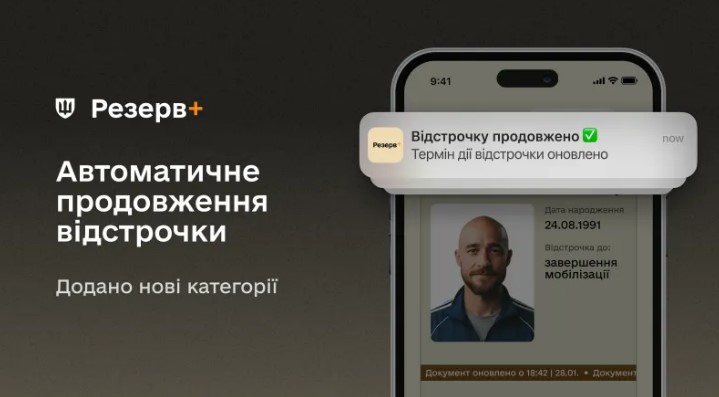 Користувачі застосунку Резерв+, чиї відстрочки автоматично продовжуються, спочатку отримали push-сповіщення про заплановане продовження, а після обробки даних — повідомлення про те, що відстрочку вже продовжено.