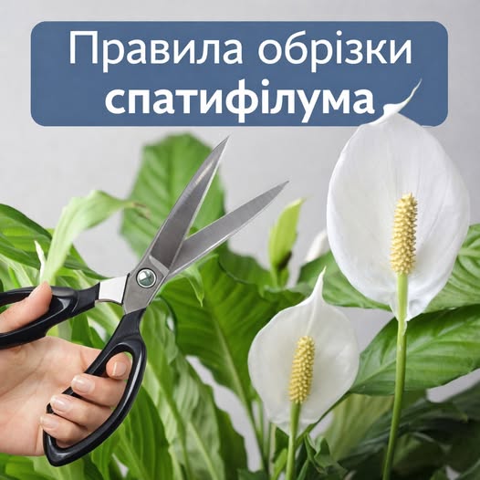 Перш за все прибирають тонке, ослаблене листя, залишаючи лише сильні пагони. Систематична обрізка сприяє рясному та здоровому цвітінню спатифілума.