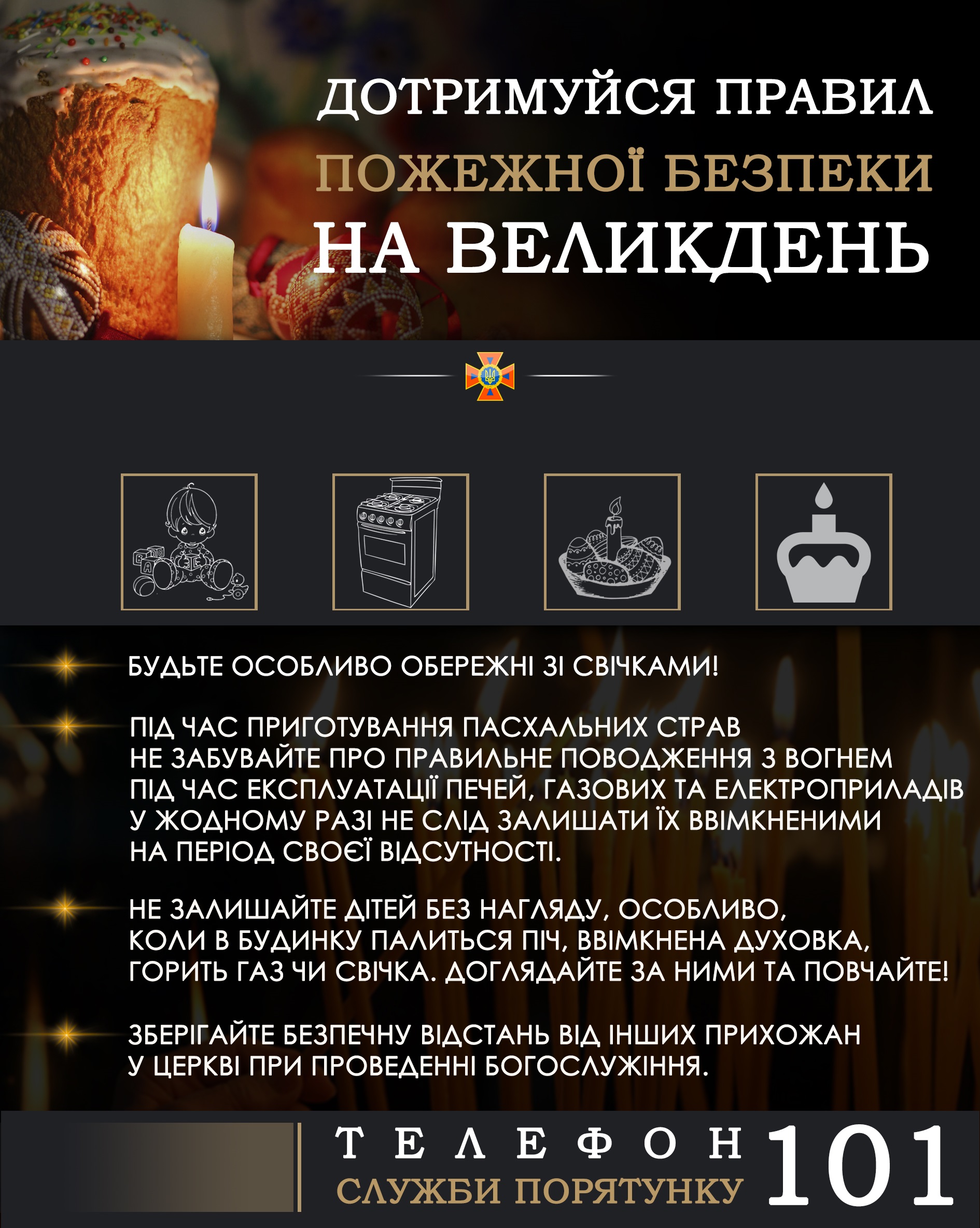Глибоцький відділ Чернівецької окружної прокуратури повідомляє: З метою безпечного святкування релігійних свят закликаємо громадян бути уважними та відповідальними.